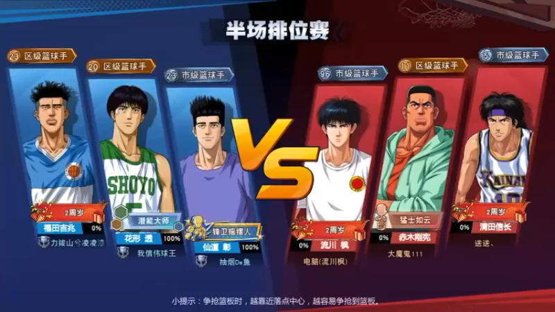 209 4《灌篮高手正版授权手游》是一款真人实时篮球竞技手游,由先知者研发,东映动画授权并全程监制。游戏以井上雄彦原作漫画、东映动画制作的同名动画片《灌篮高手》改编而成。