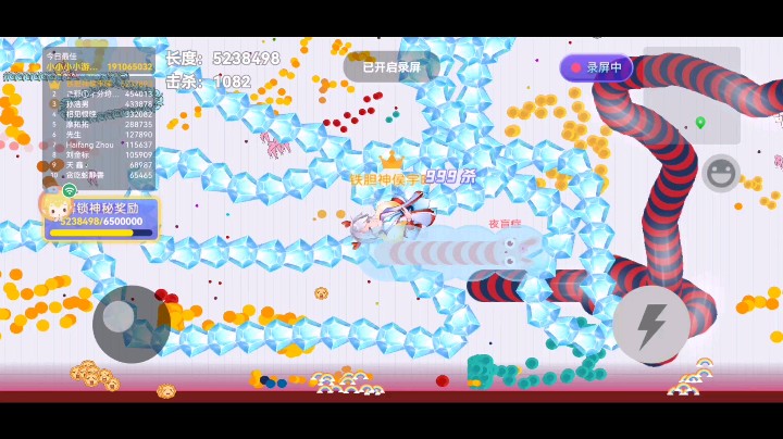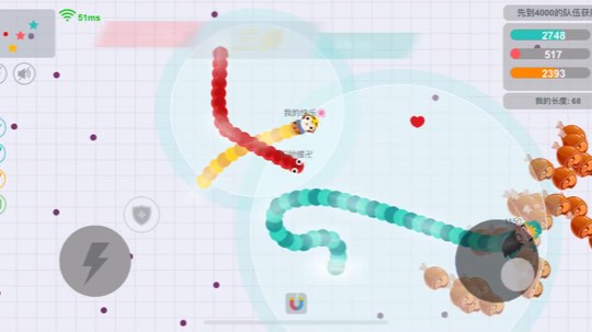 贪吃蛇大作战这个游戏被我征服了,怎么都死不掉,然后自杀 我爸看我玩他也下载一个 他的小蛇平