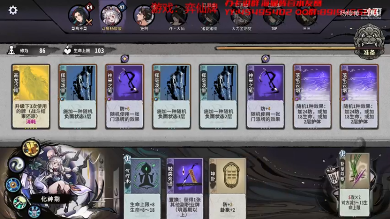 0 5《弈仙牌》是一款修仙背景的在线卡组构筑游戏。每局游戏都是一场从零开始的卡组构筑体验。玩家将从炼气期开始修炼,突破境界,获得更强的卡牌。通过换牌让卡组不断成长变强,最终击败全部对手获得胜利